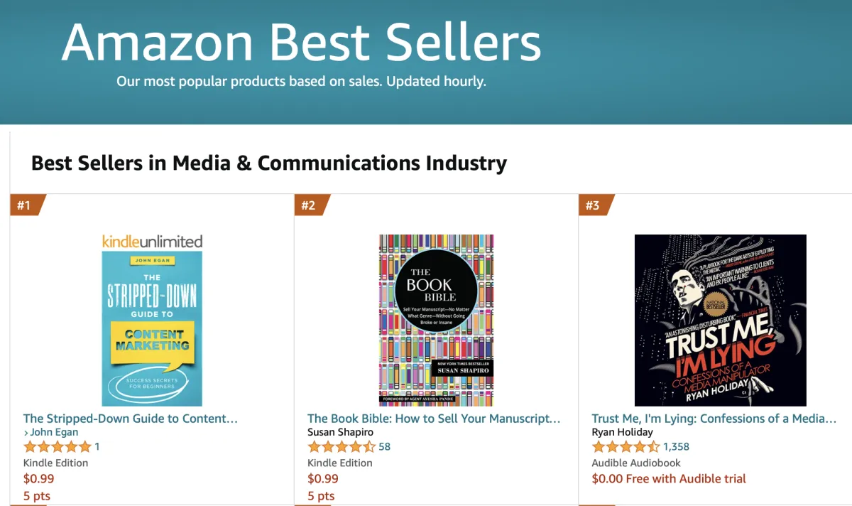 We start work on your author brand and book positioning in your first 2 weeks of starting your book. Our writing coaches, writers, and editors all keep this positioning in mind as we work with you to develop your manuscript. When your book is in pre-launch and post-launch our team of marketing professionals will pitch you to media, conferences and event hosts, podcast interviews, book stores, libraries, and we'll run e-book sales and Amazon Ads for your book on a monthly basis.